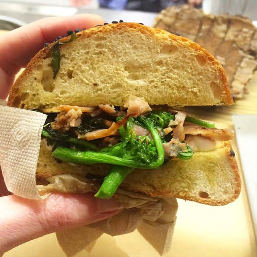 L'apertura è tutti i giorni dalle ore 8.00 alle ore 22.00. Fino alle 11.00 è possibile fare una colazione dolce con torta della nonna, brownie, plumcake alla frutta, bombe, cookies o salata con uova strapazzate, a occhio di bue, bollite o in camicia servite con pane tostato e bacon il tutto accompagnato da centrifughe, succhi biologici, tè e caffè. Dalle 12.00 è pronto il menu, mai fisso ma giorno per giorno, secondo l'offerta del mercato. È scritto su una lavagnetta. Polpo zucca e anacardi, Mezzemaniche trafilate al ragù di cortile, Agnolotti di fonduta con sugo di verdure arrostite, Anitra e cavoli, Guancia brasata, sedano rapa e carote sono solo alcuni esempi di una proposta in continuo mutamento. Bevande fai da te, prese da un grande frigo. Prezzi del tutto accettabili.