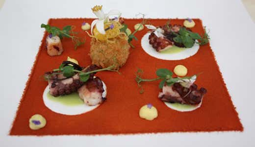 Quarto e penultimo del sabato, Andrea Macca dal ristorante Donna Carmela di Riposto. La sua creazione, un Polpo in salsa teriyaki siciliana con salsa di patate all'agro e té matcha. Nel piatto, una buona dose d’ispirazione orientale, la voglia di cucinare fusion e l’immancabile presenza della sua Sicilia: «La mia salsa teriyaki è siciliana fatta con riduzione di mosto di Nerello Mascalese, aceto di casa e salsa di soia».