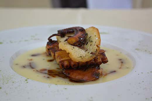 Durante l’evento, tra sabato e domenica, si sono alternati dieci cooking show. Primo protagonista di sabato, cronologicamente parlando, è stato Giuseppe Raciti, del ristorante Zash di Riposto (Ct). Lo chef, reduce dal Bocuse d'Or, ha portato in rappresentanza della sua cucina un Polpo con fave e finocchietto, abbinato al Pietrarizza bianco 2015 di Tornatore, cantina etnea con più di 50 ettari vitati nel versante Nord dell' Etna. Il piatto si presenta semplice, un trionfo di colori realizzato con le tecniche più innovative.