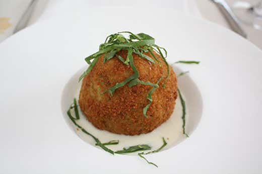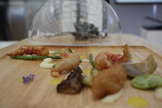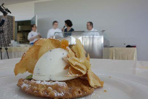 A seguire, la “sfrontatezza” di Moreno Emmi. Lo chef di Talè a Piedimonte Etneo, ha preparato per l’occasione il Latte di cavaddro con ragusano Dop su crema di asparagi selvatici e mozzarella, tartare di gambero e salsa agrodolce all’arancia, cialda di pistacchio di Bronte e crumble d’acciughe. Una creazione che nasconde da una parte la vena didattica che contraddistingue lo chef in quanto docente dell’Istituto alberghiero di Giarre; dall’altra un innato talento e qualche riferimento letterario - il latte di “cavaddu”, tanto amato dallo scrittore Andrea Camilleri.