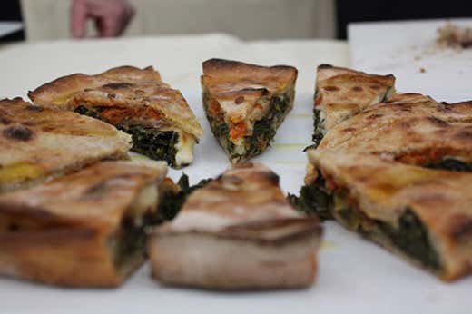 Apre la domenica una 'mpanata, quella di Pippo Arcidiacono, ex pallavolista che insieme alla moglie Simona, ha aperto una pizzeria ad Acireale. La loro specialità è l'arte della panificazione. Un impasto che rivela tecnica e conoscenza: lievito madre, poi il sale, alla fine l'extravergine d'oliva. Un tocco personale è l'aggiunta del cavolo turzo stufato in padella.