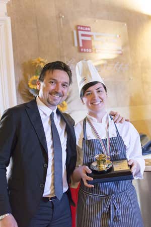 Un gruppo di talento, tra questi Arianna Fioravanti (nella foto), già corsista Ifse nel 2014 nel corso di pasticceria, che si è ora cimentata nella cucina; a lei è andata la Tazzina d’oro Lavazza con il piatto “Acciughe fresche marinate al caffè Lavazza 100% Arabica su cipolle rosse agrodolci con spumini di ricotta allo zenzero, crumble salato e granita siciliana al caffè”.