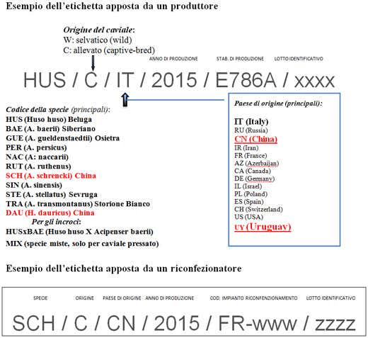 È importantissimo che chi acquista un prodotto di tale pregio sia perfettamente informato sulle caratteristiche della prelibatezza che si accinge a degustare. L’etichetta sul retro delle scatole rispetta le indicazioni proposte dalla “Convenzione sul commercio internazionale delle specie animali e vegetali in pericolo di estinzione” (Cites), obbligatoriamente usate in tutto il mondo per le uova di storione. Purtroppo però tali indicazioni risultano un codice di numeri e lettere che qualsiasi profano al Codex Alimentarius o la legislazione Cites non riesce ad interpretare!