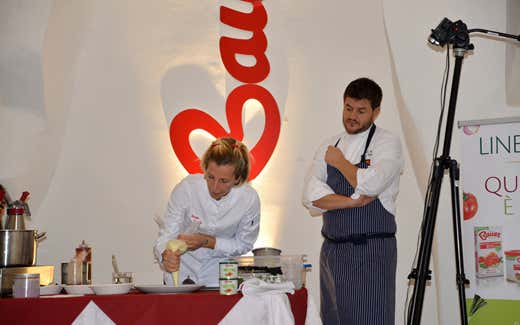 Loretta Fanella, chef pasticcere, ha quindi completato la proposta con “Luna di sorbetto al fico, con meringa alla violetta” (con Granulare Bauer «a crudo sparso sul sorbetto per dare il giusto grado di sapidità gustosa»). Apprezzamenti diffusi da parte dei partecipanti allo show cooking. Alla “prova dei fatti”, con i suoi dadi ed i suoi granulari di altissima qualità, Bauer è davvero andata “oltre il brodo”, tanto da essere adottata da chef stellati per impreziosire specialità gastronomiche esclusive, dolci inclusi.