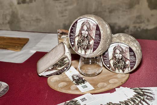 Per il pecorino a latte crudo della Garfagnana, per esempio, in cui si percepiscono tutte le essenze delle erbe pascolate, l’artista giapponese Masato Yoshioka ha realizzato “Vento sulla spiaggia”, una figura femminile con i capelli scomposti da una folata; il pecorino a latte crudo di Volterra, invece, rappresenta la facciata della chiesa di Santa Chiara per opera del pittore Nico Paladini. Il pecorino di Pienza stagionato è opera di Masato Yoshioka che sceglie per etichetta “Una notte tranquilla”: l’immagine di una donna sullo sfondo di un cielo notturno toscano. Sul pecorino stagionato in grotta, stagionato su assi di castagno, si riconosce l’immagine di un villaggio bianco. È Sassi, un'etichetta disegnata sempre dal fiorentino Nico Paladini. E poi ancora, opere di Fabio Calvetti, Fabio Romiti, dell’artista americano Edward Giobbi e del fiorentino Giovanni Maranghi.