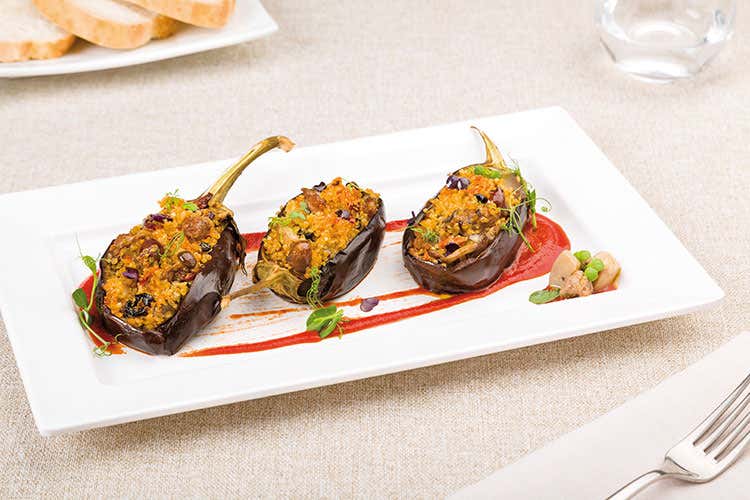 Melanzane ripiene di quinoa con funghi, salsiccia e olive con Quinoa Knorr Professional
