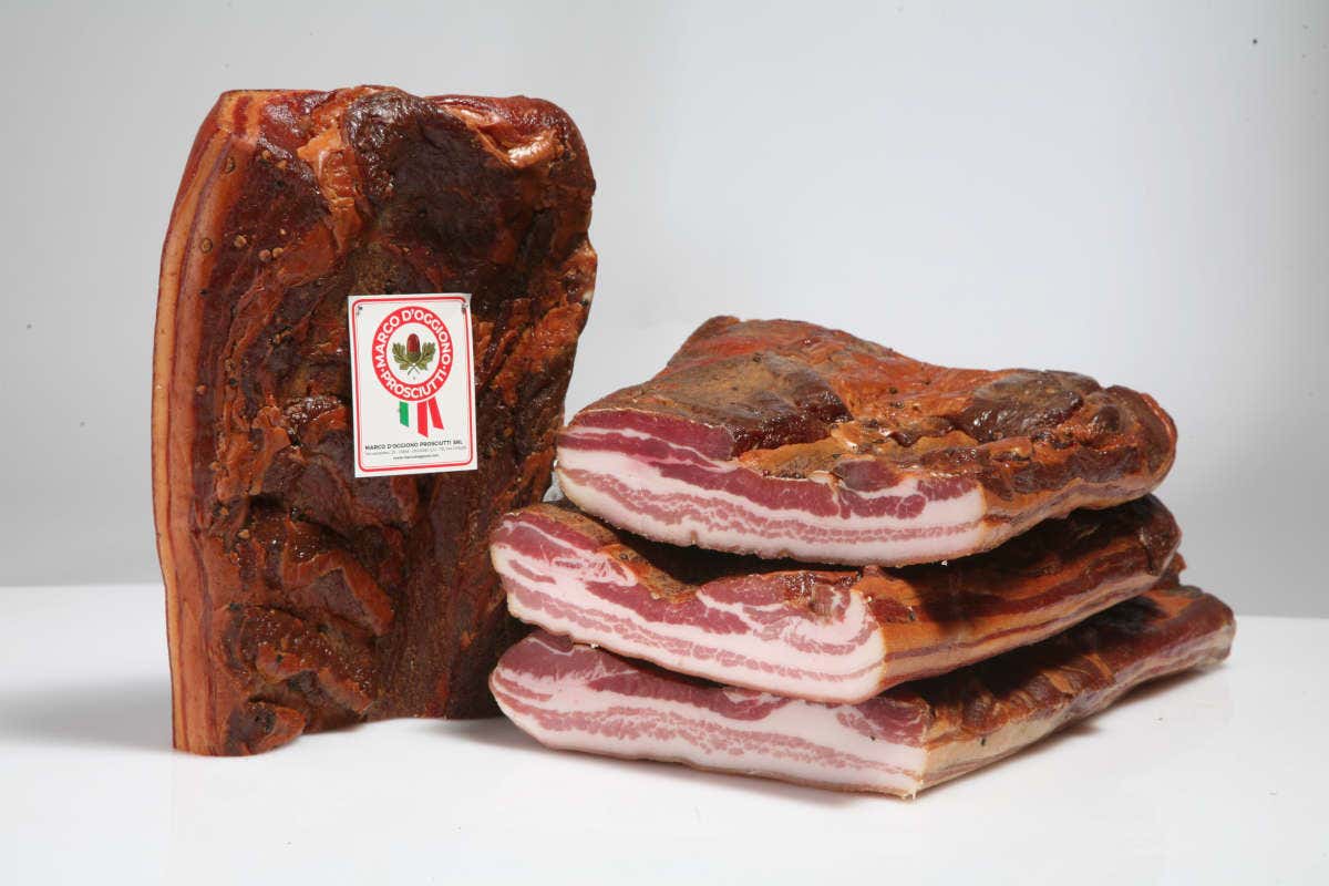Marco D’Oggiono Prosciutti (www.marcodoggiono.com) - azienda storica e famigliare ad Oggiono, in provincia di Lecco, che con passione ed esperienza produce prosciutti ed è rinomata per il suo prosciutto crudo dolce e buono – propone la propria versione del bacon: la Pancetta affumicata Bacon in versione magra e saporita, grazie al gusto imperdibile dato dal particolare processo di affumicatura.