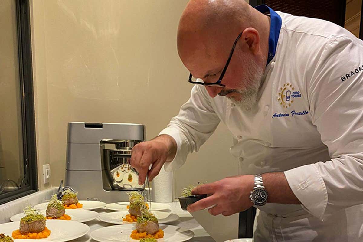 Come seconda portata lo chef ha riservato una Lombatina di vitella con paniur di erbette di campo con tartara di zucca profumata allo scalogno e germogli di porro, che i corsisti hanno potuto condire con gli oli degustati.