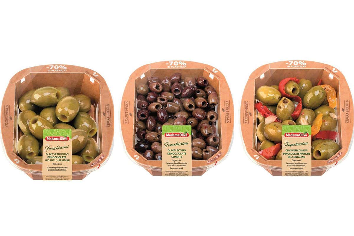 Nuovo packaging ecologico per la linea "Freschissimi“ che comprende sette referenze a base di olive fresche nel reparto gastronomia e “take away“ della grande distribuzione organizzata italiana. Confezioni sempre più sostenibili, interamente riciclabili e prodotte da materie prime riciclate, che consentiranno una riduzione della plastica pari al 70% rispetto alle precedenti versioni.