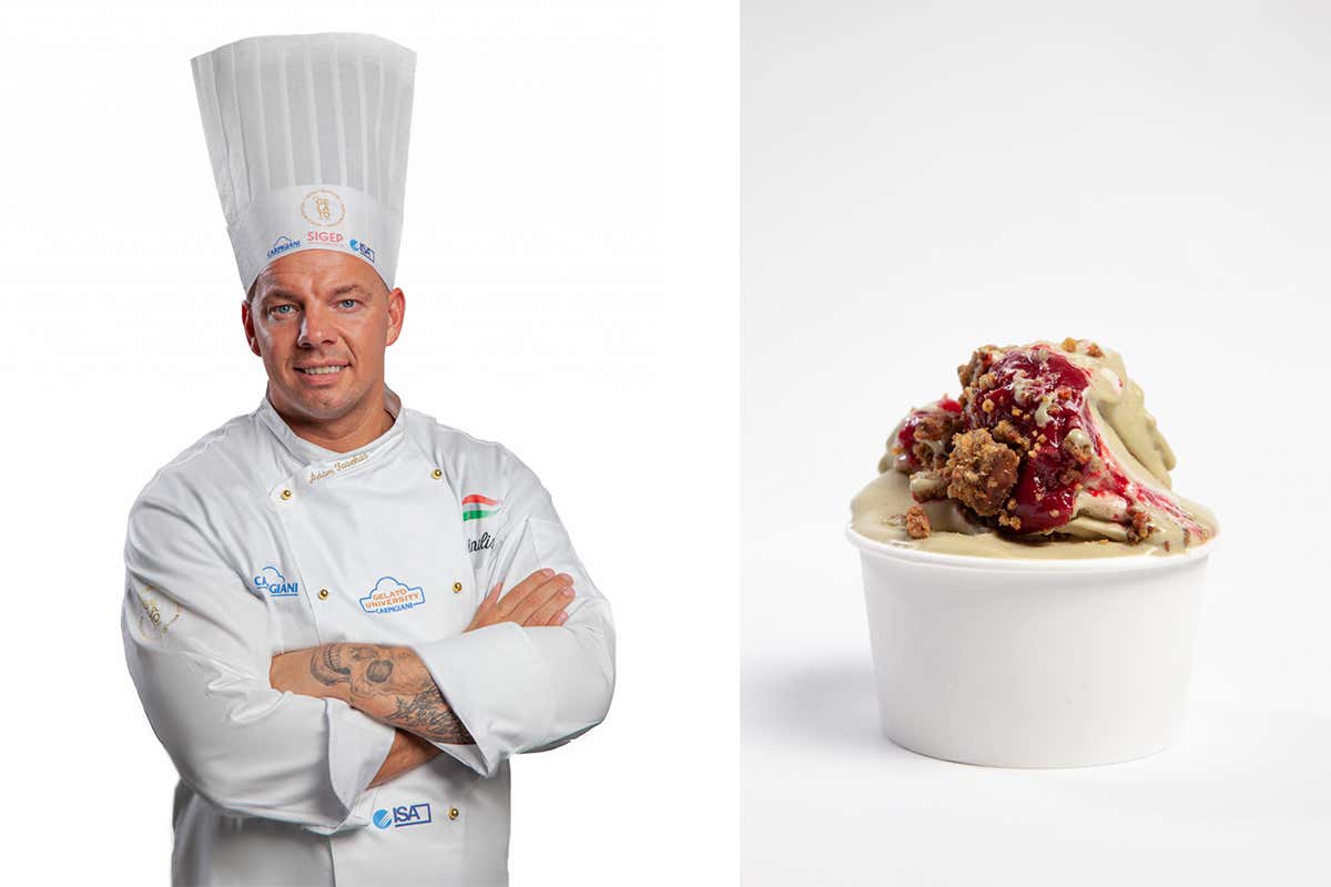 Lontano da ogni pronostico il miglior gusto di gelato del mondo è ungherese. Si tratta di “Frutta di Pistacchio” di Ádám Fazekas della gelateria Fazekas Cukrászda di Budapest, un cremoso gelato al pistacchio salato con una coulis di lamponi speziata alla fava di Tonka e un croccante al pistacchio che si è aggiudicato il primo posto alla finale mondiale di Gelato Festival World Masters, il principale torneo di categoria con partner Carpigiani e Sigep - Italian Exhibition Group.