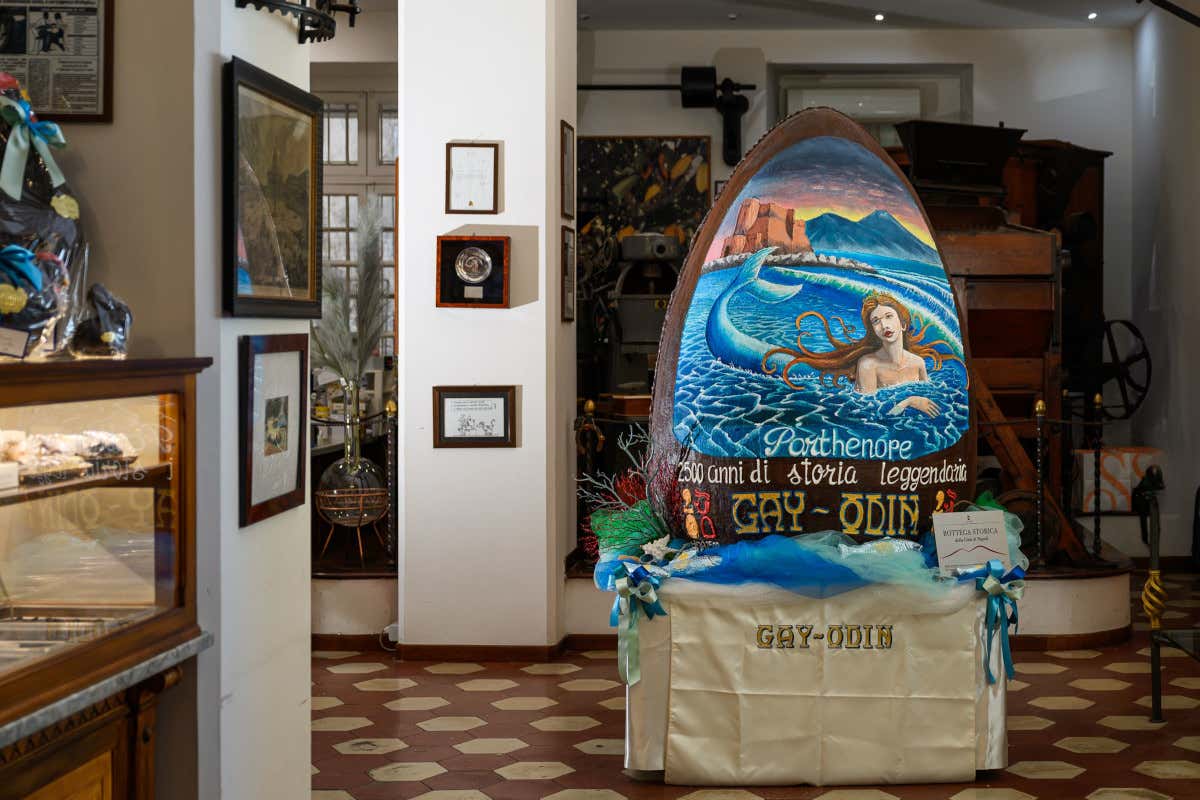 In anno corrente la città di Napoli celebra i suoi primo 2500 anni di vita. Comitati promotori, calendario di eventi, oratori, il podio da cui officiare parole, nastri da tagliare, salmi che finiscono in gloria e convegni che finiscono con banchetti. Gay-Odin, invece, cosa spontaneamente fa? Nell'imminenza della Pasqua, il mito della Sirena Parthenope assume materica sembianza di un uovo di Pasqua. Piccino non è. Doverosità di cronaca ci impone di dire che stiamo parlando di una scultura di cioccolato alta due metri e dal peso di 350 chili. Così, la fabbrica di cioccolato Gay-Odin omaggia la sua città adottiva. La città che sul finire del XIX secolo benevolmente ed amorevolmente accolse i due giovani cioccolatieri piemontesi Onorina Gay e Isidoro Odin.