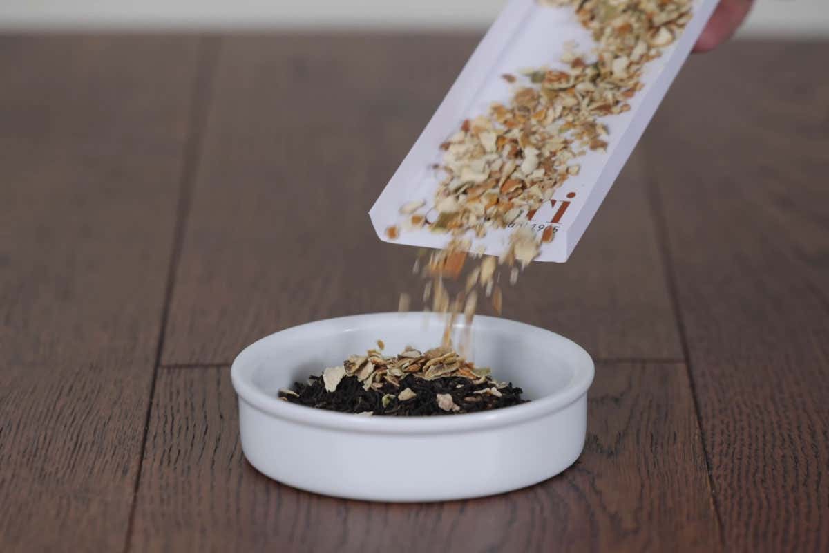 A completare l’esperienza, il Tea Master Albino Ferri consiglia un abbinamento che valorizza la complessità aromatica e le note grasse del dolce. «Parlando di grassezze e complessità aromatiche, sicuramente un tè nero indiano, un Darjeeling arricchito con pezzettini di scorza di agrumi, è l’ideale. Dona freschezza e un tocco elegante», spiega Ferri. Questo pairing crea un contrasto armonioso con la crema al burro, per un’esperienza di degustazione raffinata ed equilibrata.