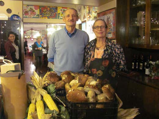 In tavola sono arrivati lardo e salame delle Valli con polenta, bresaola di punta d’anca alla senape, prosciutto crudo, polpettine della nonna. Quindi il celebre coniglio al forno di Ornella con polenta gialla e polenta taragna (un piatto che da solo vale il viaggio); funghi porcini trifolati; fesa di vitello al forno; pollo saporito all’aglio e prezzemolo; varietà di dessert della Casa. In abbinamento un buon Valcalepio Rosso doc 2013 dell’azienda Medolago Albani di Trescore Balneario.