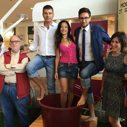Dopo gli interventi del presidente di Oriocenter Giancarlo Bassi, dei sindaci di Orio Alessandro Colletta e di Scanzorosciate Davide Casati, nonché della presidente del Consorzio Moscato, Angelica Cuni, del responsabile artistico Damiano Fustinoni, dell’architetto Massimiliano Mandarini e di Enrico Radicchi per Slow Food, si è passati dalle parole ai fatti: una simpatica gara di spremitura delle uve a piedi nudi tra la fotomodella Anastasia, il sindaco di Orio e quello di Scanzorosciate. Per la statura e la mole, quindi per la maggiore capacità di spinta, ha senza dubbio vinto il sindaco di Orio. Quindi – cerimoniere il Capitano del Palio del Moscato, Roberto Pezzotta - si è passati alla degustazione, per convincere tutti, anche chi non lo aveva mai assaggiato, che il Moscato di Scanzo merita una festa grandiosa, perché è un vino unico, pregiato, che nasce in una zona bellissima a due passi dalla città.