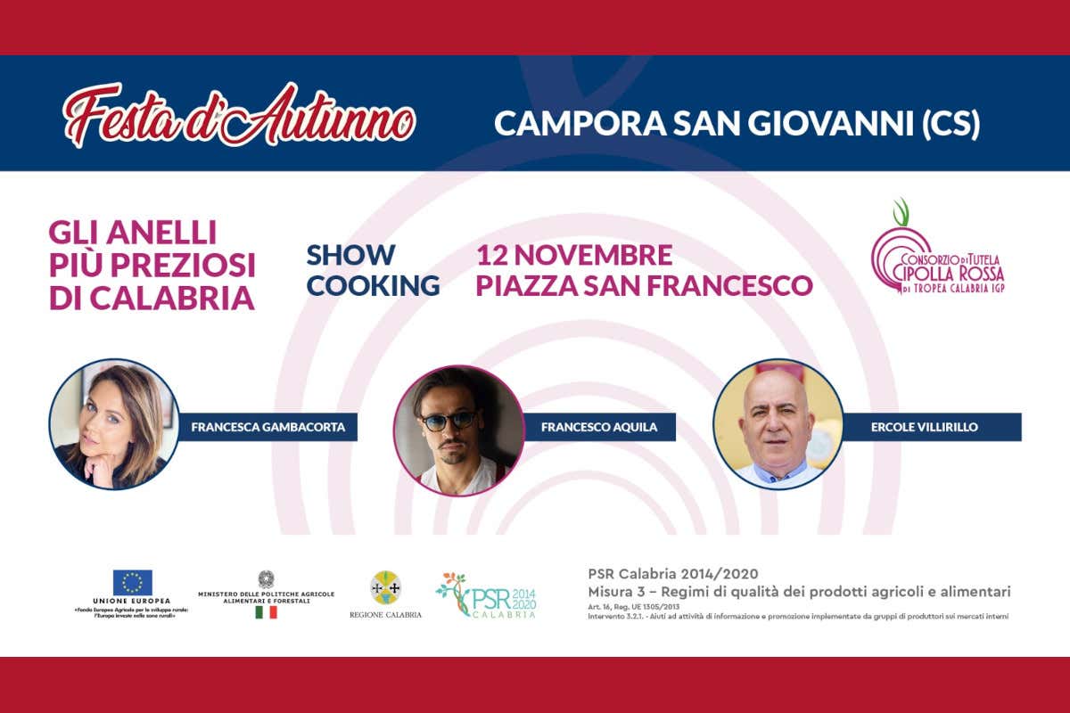 L'Associazione artigiani commercianti di Campora è il promotore e l'organizzatore principale, con il Consorzio della Cipolla rossa di Tropea Calabria Igp come main partner. Il consorzio parteciperà con una serie di show cooking condotti da chef nazionali di prestigio, che delizieranno il pubblico all'interno di uno speciale format chiamato "Gli Anelli più preziosi di Calabria", creato per l'occasione dall'agenzia Adv Maiora. Le attività inizieranno sabato 11 alle ore 13 al Ristorante Riva Falerna con lo spettacolo culinario di Aquila e Francesca Gambacorta, seguito alle 14 da Ercole Villirillo. La domenica 12, Piazza San Francesco a Campora San Giovanni si trasformerà in un grande spazio del gusto dedicato alla deliziosa e croccante Cipolla rossa calabrese. Gli spettacoli culinari degli chef Francesca Mannis, Aquila e Francesca Gambacorta, e Ercole Villirillo avranno inizio alle ore 10, offrendo un'esperienza gastronomica indimenticabile.