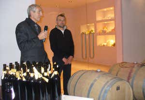 Nella foto: Mauro Tajariol (a sinistra) con il cantiniere Valerio Bonomelli introducono la serata del 'prescelto”