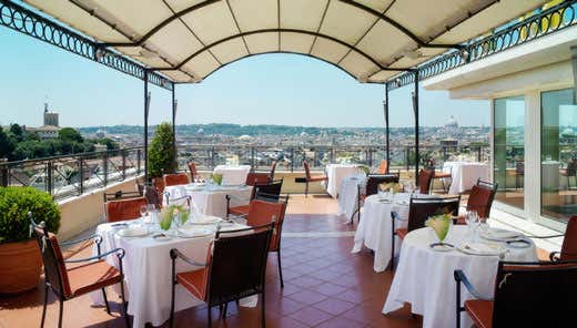 Per la struttura del Gruppo Sina Hotels, punto di riferimento della prestigiosa hotellerie capitolina, è un inizio di autunno all'insegna dei colori, dei profumi intensi e dei sapori della tradizione culinaria spagnola, oltre che un'occasione di richiamo per ammirare lo stile rinnovato del ristorante, con interni dal design contemporaneo, dove ogni dettaglio è scelto con cura ed attenzione: la sala interna, all'insegna del black and white, e la splendida terrazza che si affaccia sulla città si riconfermano in questa occasione un luogo di grande prestigio per gustare l'eccellenza della gastronomia latina.