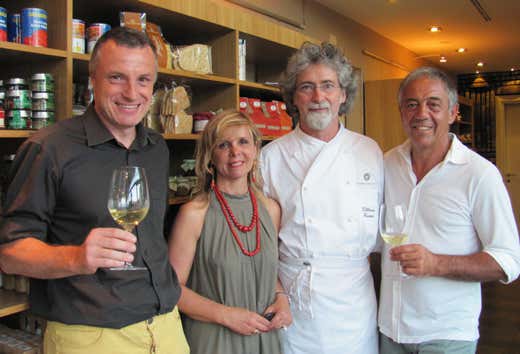 La serata si è svolta in Franciacorta, nella sede della 'Dispensa Pani e Vini” di Vittorio Fusari (nella foto, secondo da destra), il noto chef già protagonista a 'Il Volto” di Iseo (Bs), che ha saputo da par suo preparare una cena che ha coinvolto nel modo migliore i prodotti tipicamente sardi della nuova linea Eticalimenta e il Franciacorta Brut Docg dell'azienda San Cristoforo di Erbusco (Bs), titolare Bruno Dotti (nella foto, a destra).