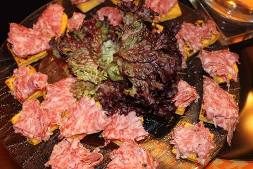 Al ristorante dell'Hotel d'Inghilterra, il Caffè Romano, si potrà gustare in vari abbinamenti, oltre a quello classico con la polenta grigliata. In occasione della mostra “Verso Monet, Storia del paesaggio dal Seicento al Novecento”, aperta fino a maggio a Vicenza, proprio Nicola Negretto, questo geniale chef di Villa Michelangelo, aveva creato un intero menu interpretando le materie prime e componendole con i colori del grande pittore impressionista francese.