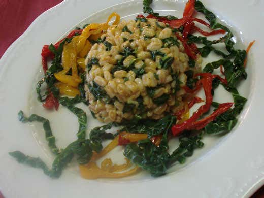 Sbollentare gli spinaci per circa 2 minuti ed il farro separatamente per circa 20 minuti. Tagliare gli spinaci e mischiare il farro aggiungendo parmigiano, uova intere e sale e pepe quanto basta. Mischiare tutto e mettere in stampini imburrati e panati.