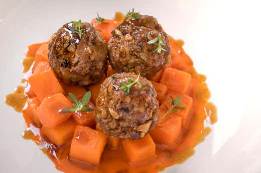 Polpetta d’agnello alla mandorla con spezzatino di carote alla curcuma
