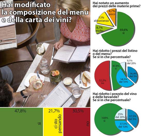 La conferma viene in ogni caso da una modifica della composizione dei menu e delle carte dei vini indicata dal 47,8% del totale, mentre un altro 21,7% indica che ci sta pensando.
