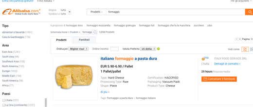 Il ministero delle Politiche agricole ha compiuto l'impresa: grazie all'intervento dell'istituzione pubblica, il portale cinese di e-commerce Alibaba ha oscurato l'annuncio, e quindi bloccato le vendite, di un formaggio venduto come "parmigiano", ma con i buchi. Un'immagine destabilizzante per gli italiani che sanno bene che una forma di parmigiano non si presenta con dei buchi in stile groviera. Il formaggio in causa era infatti prodotto in Turchia e veniva offerto in quantità industriali, fino a 5mila tonnellate al mese.