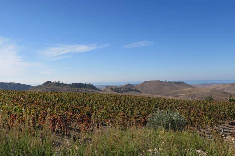 Spostandoci in contrada Arancio di Gela, sulle colline a nord e al confine con Butera troviamo i terreni delle vigne di inzolia, grillo, sirah, frappato; a 400 m di altitudine, terra rossa e pietrisco esposti a est-ovest e ben soleggiati. I venti del mare, che si scorge in lontananza, arrivano fin qui. Le colline sono quasi bianche, attraversate dai calanchi; i valloni sono ricchi di vegetazione grazie alle acque piovane. In limitata quantità l’azienda produce Inzolia, profumato e minerale, Nero d’Avola ben strutturato, olio evo dai cultivar biancolilla, nocellara, messinese, nera, mandorle, ceci, lenticchie, fave, frutta di stagione.