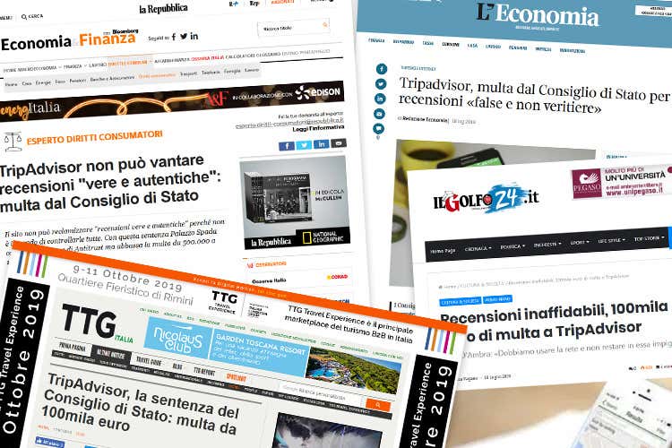 La notizia della multa a TripAdvisor com'è stata ripresa da siti e giornali