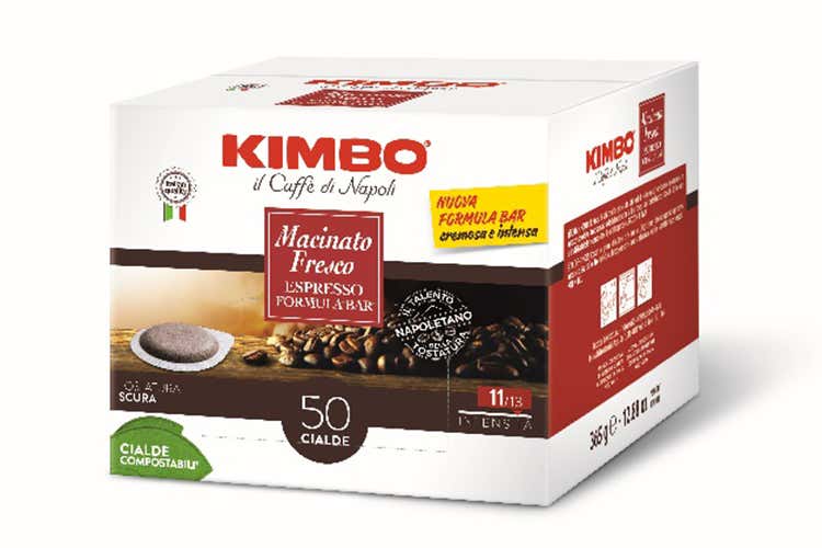 Kimbo presenta una nuova cialda Kimbo Macinato Fresco, rinnovata nella sua formula bar. Rende il caffè più cremoso e intenso e la tostatura scura conferisce un gusto pieno e avvolgente, dando agli estimatori del caffè la possibilità di ricreare in casa un caffè buono come quello del bar.
