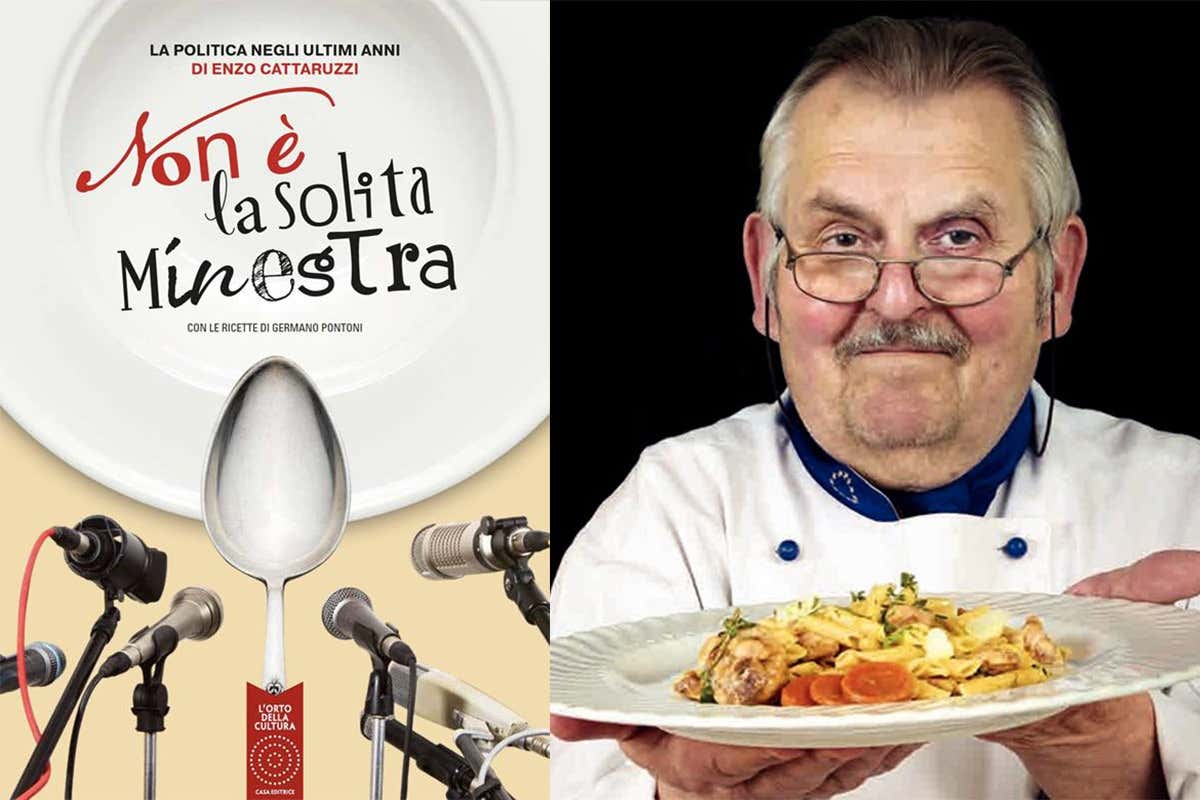 Cambiano i ministri, cambiano i governi, ma la minestra è sempre la stessa: questo è il perenne lamento della vox populi. Quando, invece, la politica e la cucina s'incontrano, il vecchio adagio può essere rivisitato e corretto come suggerisce Enzo Cattaruzzi che provocatoriamente parla di politica abbinandola alle ricette del Maestro di Cucina Germano Pontoni. Formula originale che sottolinea il binomio e l'effervescenza con cui la tavola è sempre stata luogo di incontri conviviali, di affari, di accordi politici, anche gomito a gomito, tra rappresentanti di diversi partiti.