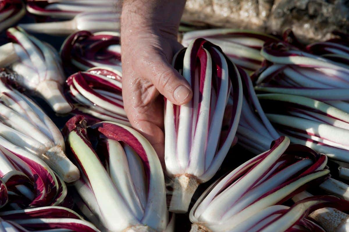 Il radicchio, dalla rustica cicoria selvatica, ha saputo nel tempo trasformarsi in un fiore speciale dal gusto amatissimo, bello come una rosa. Ma a crearlo, sviluppando il ruolo della natura, sono stati i contadini veneti con una primordiale pratica anti-spreco, poi perfezionata, per far durare la cicoria più a lungo, soprattutto per l'inverno. Ci sono il Radicchio rosso di Treviso Igp tardivo, detto “spadon", signore del freddo, ottenuto dopo molto lavoro, preceduto a settembre dal Rosso di Treviso Igp precoce, il Variegato di Castelfranco, l’unico a cespo aperto, dalle foglie chiare e screziate come petali, figlio, non si quanto voluto, di mamma scarola e papà rosso trevigiano.