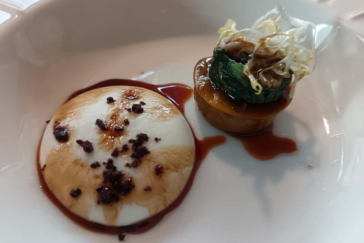 Il menu dello chef Andrea Aprea sembrava animato da un gioioso incitamento a non mollare, a giocarsi le carte del made in Italy, a riproporre le nostre eccellenze tradizionali ancora più convinti: abbiamo affrontato col dovuto orgoglio nazionale l'uovo bio con patata, Grana Padana Dop, tartufo nero; il riso Carnaroli cacio e pepe con fichi e gamberi; il tortello genovese di manzo, provolone, scarola, olive nere; la faraona con cavolfiore, senape, camomilla; il babà con crema e amarena. Il tutto accompagnato da calici di Bellavista Franciacorta Docg, in versione rosé e demi-sec, dal rosso toscano (un blend di Cabernet Sauvignon, Merlot e Sangiovese) Petra Hebo, e da condimenti di gran classe come l'aceto balsamico di Modena Ponti, un extra vecchio di 25 anni.