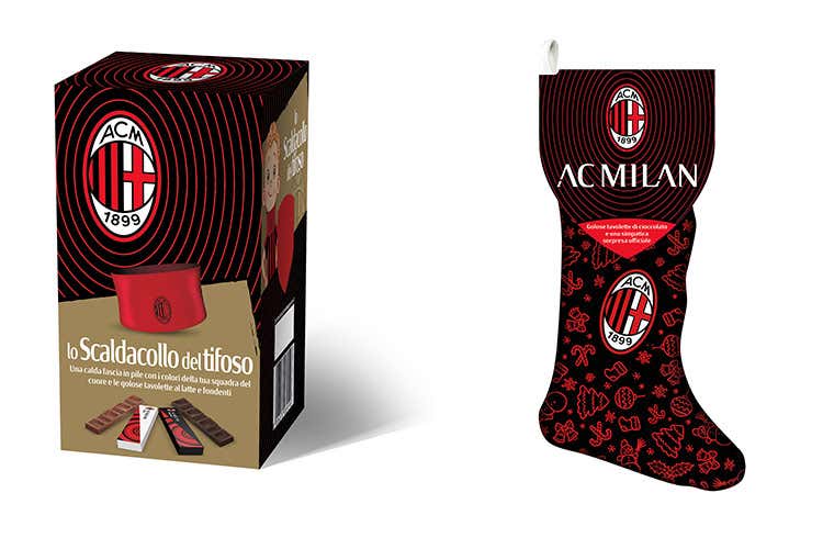 Anche le Calze della Befana pensano ai tifosi di calcio. Ogni calza contiene 2 snack al cioccolato al latte e riso soffiato, 6 tavolette di cioccolato (2 fondente e 4 al latte) oltre a un’originale sorpresa brandizzata con i colori della squadra. Tra le soprese, face paint, kit matita/righello, fischietto, portachiavi, spille, frisbee in tessuto, fascia da capitano, card memory game.