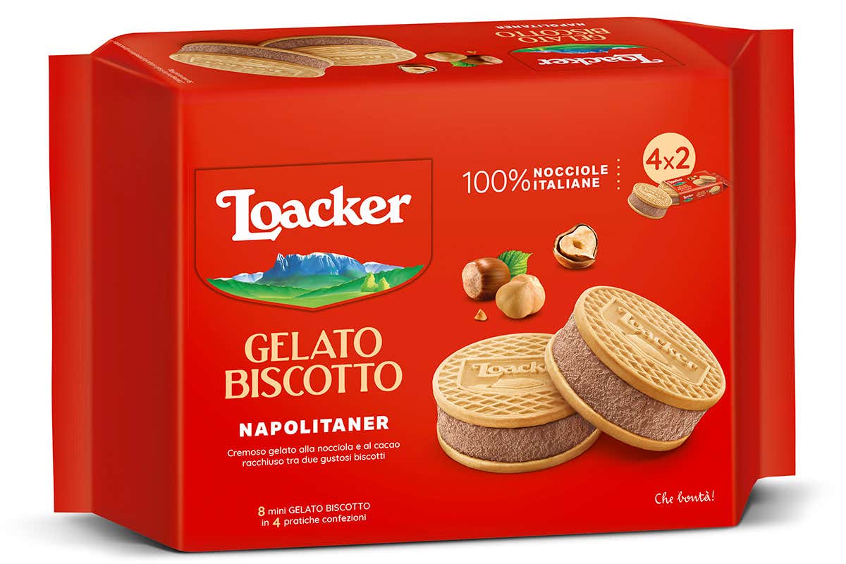 La prima novità è rappresentata dal Gelato Biscotto Napolitaner, gelato alla nocciola e al cacao tra due biscotti. Protagonista il gusto delle nocciole 100% italiane tostate in casa Loacker, le stesse nocciole che esaltano la crema Napolitaner.