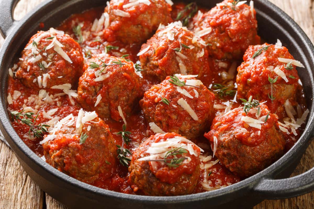 Puoi servire le polpette con entrambe le salse separatamente o creare uno strato di salsa di pomodoro sul fondo del piatto e posizionare le polpette sopra con una generosa colata di salsa al formaggio.