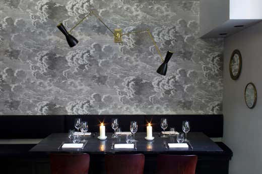 Gli interni, curati da Studio Tricot, si ispirano ad un design sofisticato dal gusto retrò che si sviluppa attraverso ambienti accoglienti e conviviali, lasciando ai dettagli d’arredo il compito del racconto. Gli spazi sono decorati con lampade in ottone su disegno anni ‘50 e opaline che ricordano i bistrot francesi, arricchiti da carte da parati disegnate da Fornasetti e sedute rivestite con tessuti sartoriali made in Italy. Le scelte cromatiche prediligono i toni sobri del blu e del grigio, con materiali che vanno dal legno e ferro per i pavimenti, alle finiture in ottone e ai marmi per i tavoli.