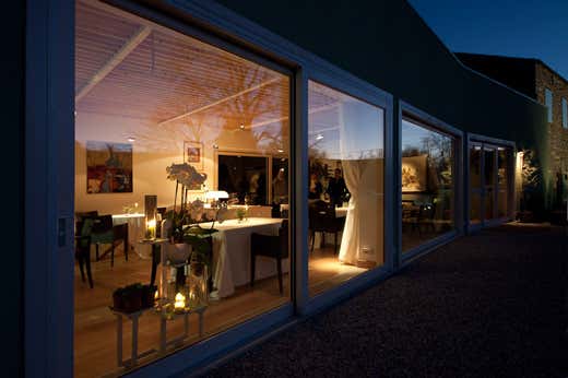 Un mulino in mezzo ai campi dice qualcuno, un restauro di alta classe dice un altro, un edificio ben restaurato con un nuovo corpo di fabbrica ben inserito dico io. Tante vetrate ma nulla di freddo. Pochi tavoli. Soli 16 posti ma ben 6 persone, tra sala e cucina, sono lì per noi. Subito ci sentiamo privilegiati. E questa sensazione continua per tutta la cena. Privilegiati nell’assaporare piatti che parlano di lavoro, di ricerca, di tradizione, di voglia di farti avere delle sensazioni gustative inusuali, di farti piacere, di donarti un poco di se stessa.
