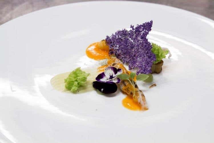 nella foto, primo a destra), adesso anche volto televisivo, del Palazzo Vialdo di Torre del Greco (Na). Prelibata la sua proposta: montanara alle erbe di mare con stracciata di bufala, gambero bianco di Salerno, punta di cavolo romanesco e germoglio di rapa rossa con spruzzata finale di bergamotto.