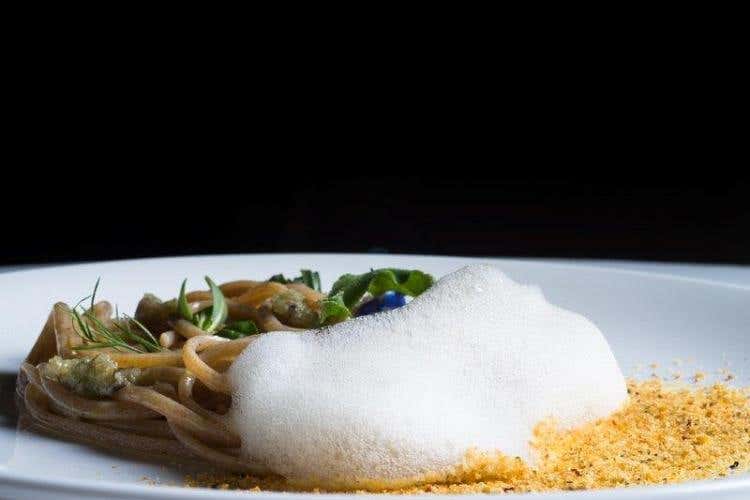 Tra i piatti che più ci hanno colpito citiamo: Zucca, zola e zenzero (cappelletti alla bourguignonne); “Pasta al mare” (linguine di farro con spiaggia, profumi e frutti di mare); Branzino selvaggio dell’Adriatico cotto sul fuoco, acciuga, oliva e broccoletti; Gallinella di mare e ortaggi verdi in brodetto allo zafferano; Piccione arrostito, rabarbaro fresco e foie gras; Maialino da latte croccante, tamarindo e pinzimonio; Passato di cachi al limone, piccoli frutti e sorbetto; Meringata ai marroni piemontesi con gelato al succo d’acero; Erbe e polveri del mondo.