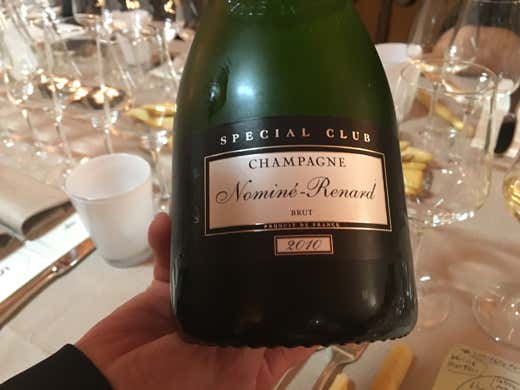 Nomine Renard, un brut da aperitivo, assemblato con parti uguali di Chardonnay, Pinot noir e Pinot meunier della cote de blancs, vinificato e affinato in acciaio, 36 mesi sui lieviti, beverino e fresco, è stato gustato con un Salmone marinato su una pasta sfoglia, particolarmente delicato. Facile e azzeccato l’abbinamento. In vendita per la serata a 36,50€.