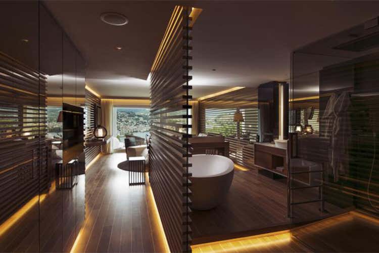 Ciascuna delle 18 suites cattura gli ospiti fin dal primo istante grazie alla vista mozzafiato che regalano le grandi finestre, lasciandoli stupiti ogni volta come fosse la prima. Le suites, tutte rigorosamente vista lago e dotate di uno splendido terrazzo, ricordano una cabina armatoriale di grandi dimensioni: 16 hanno infatti una superficie di 50 mq e due di 105 mq modulabili, con pareti scorrevoli che si possono chiudere creando una meeting room nella zona giorno da dedicare anche al lavoro, ma che di notte si trasforma in una camera da letto per due persone.