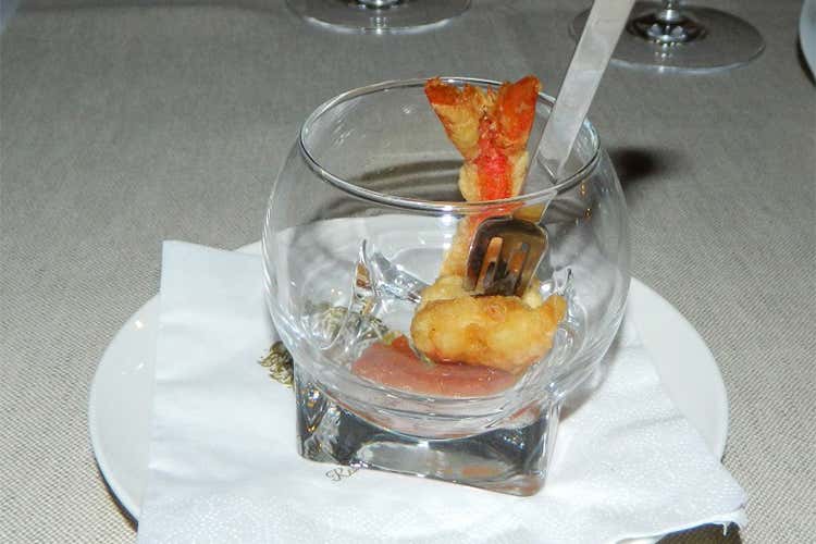 Una sinfonia di profumi e sapori che ha preso inizio con un Gambero rosso in tempura su crema di carote al miele ed è proseguita con Capasanta alla piastra con spuma di patate nuove e sorpresa di tartufo bianchetto, Risotto mantecato al tartufo bianchetto con scampi del Mediterraneo caramellati al miele d'acacia, Filetto di branzino da lenza sfumato al Martini Dry con tortino di patate al tartufo estivo e si è conclusa con Gelato al tartufo e miele con pere al Vin Brulè con bavarese alla nocciola piemontese.
