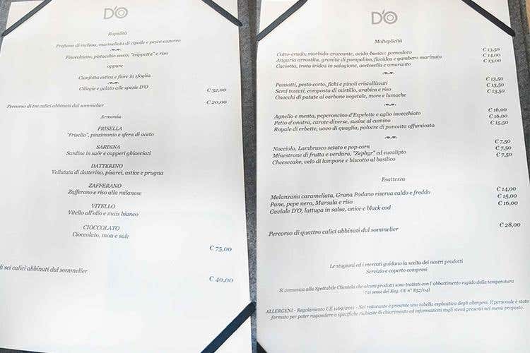 Nessun fronzolo o luce sbagliata. Nessuna decorazione che non sia studiata. Del vecchio D'O restano solo le monoposate o i bicchieri, il resto è tutto nuovo, come molti piatti del menu che sono chiaramente in linea con la Cucina Pop di Davide, ma rappresentano un nuovo passo avanti.