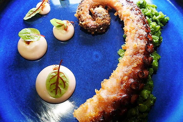 Polpo alla plancia, nduja e spuma di provola affumicata