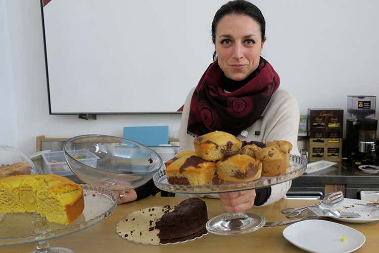 Irene d’Asta che gestisce la Caffeteria dallo scorso ottobre. La saletta con il bar è accogliente e curata, arredata con preziose e colorate vetrofusioni, scaffali per delizie gastronomiche e vini. Dieci tavoli e, nella bella stagione, si può godere dell’ampia corte.