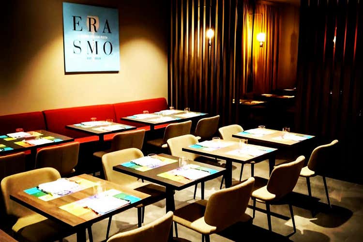 Il locale si presenta arioso ed elegante, con attenzione ai dettagli da ristorante stellato, non certo da classica pizzeria (cfr. la cura dell’arredamento e delle toilettes). Quanto alla posizione “Erasmo” si trova alle spalle della turisticamente brulicante via Indipendenza, in una tipica stradina della Bologna medievale. Non sarà di passaggio ma la curiosità stimola la ricerca, no?
