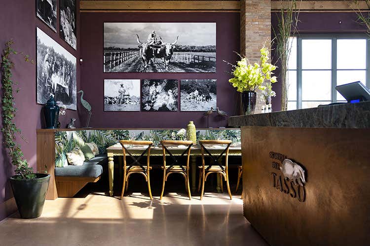 Appesi alle pareti dell’osteria, i quadri del pittore Bonafedi riproducono scene di vita maremmana dei primi del Novecento. All’esterno la vegetazione caratteristica della zona crea un ambiente unico immerso nei vigneti di tenuta Guado al