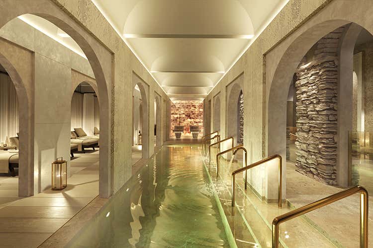 Direttamente dall'Hotel si raggiunge la nuova spa termaleche si sviluppa al piano terra intorno alla grotta naturale. Qui l’offerta prevede una nuova vasca termale Meditarium, il nuovo percorso Kneipp e l’area umida con sauna, bagno turco a cabine per trattamenti umidi. La mano degli architetti ha ridefinito anche la nuova reception della Spa, arricchita da un’area relax in cui concedersi una pausa tra un percorso benessere e l’altro. Tutto il primo piano della Spa è stato ridisegnato, con le cabine per i trattamenti estetici e termali e la nuova palestra.