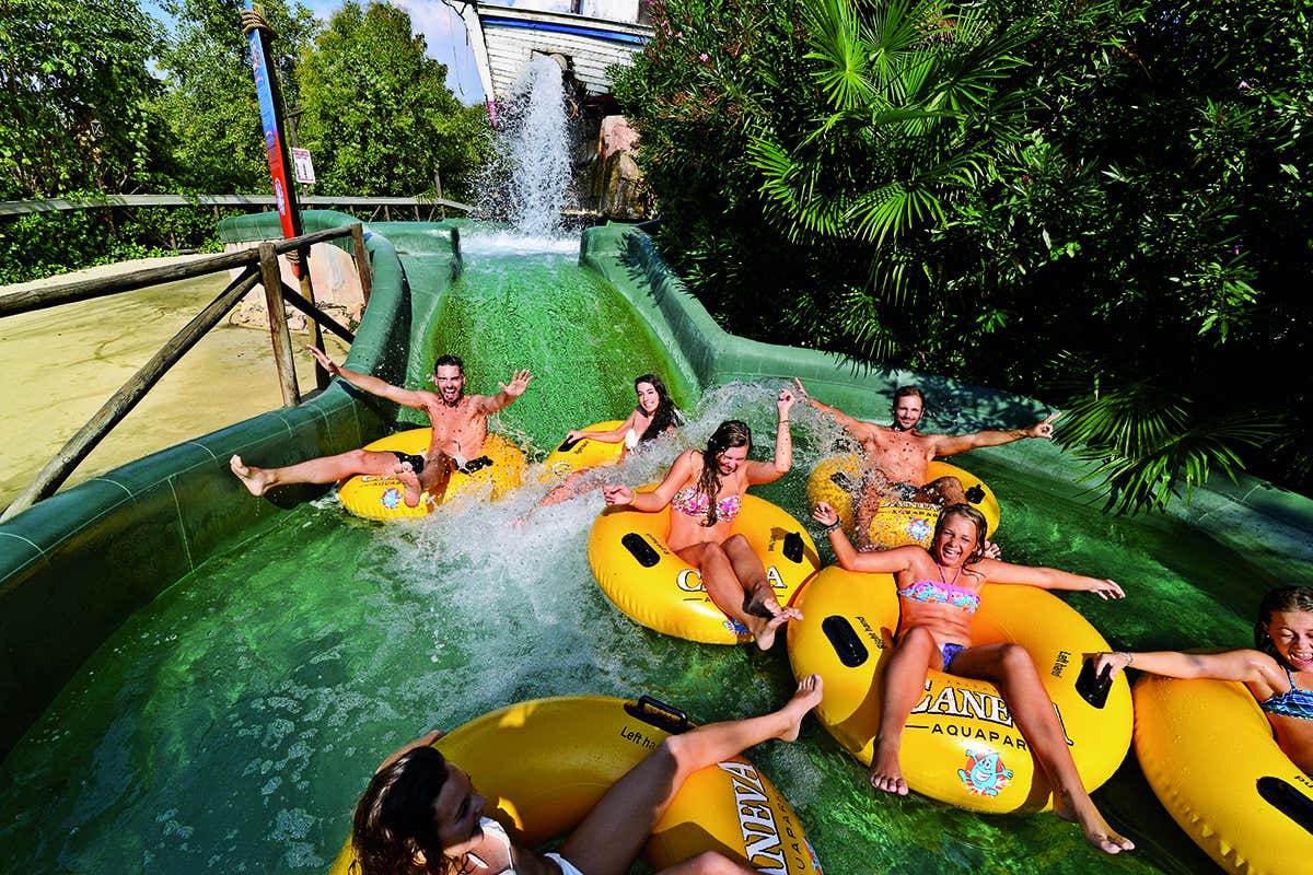 Caneva The Aquapark è un’isola caraibica immersa nel verde, tra musica coinvolgente, piante tropicali e spiagge di sabbia bianca finissima. È il posto ideale per rilassarsi nell’acqua cristallina di incantevoli lagune senza rinunciare alle emozioni di scivoli mozzafiato e tortuosi percorsi a bordo di gommoni e tappetini.